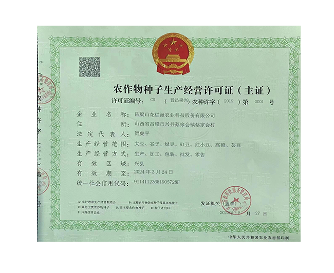 呂梁山花爛漫農業(yè)科技股份有限公司是山西省農業(yè)產業(yè)化重點龍頭企業(yè),公司成立于2008年,法人代表賀虎平,注冊資本1000 萬元,現有員工 30 人。公司位于興縣蔡家會鎮(zhèn)蔡家會村建有占地面積1萬多平方米生產區(qū)和辦公區(qū),年總加工雜糧能力達到4萬噸。擁有一套日精加工50噸谷子成套設備生產流水線;擁有一套日精加工30噸豆面、蕎面設備流水生產線;擁有一套日精加工50噸紅小豆、豇豆、綠豆、腎型黃豆、紅蕓豆設備流水生產線,2020年引進省農科院農產品加工研究所谷子精深加工技術,目前設計年產300噸的小米油加工一條龍生產線已經安裝調試完畢,產品經化驗達到國家一級油標準,并獲得兩項專利證書。主要產品有“山花爛漫”牌有機小米、綠色小米各種精美包裝系列;蔡家會村豇豆面、豌豆面等雜糧面、手搟豆面系列、以及有機精品雜糧系列。擁有“山花爛漫”山西省著名商標。公司采用線下和線上銷售相結合的營銷模式。